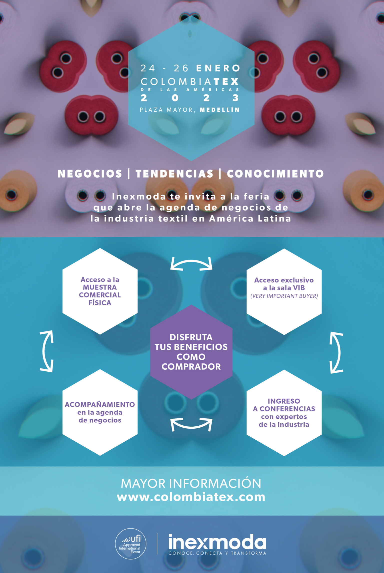Postúlate como comprador en Colombiatex 7 diciembre 2022 Colombiatex 2023Del 24 al 26 de enero, en Plaza MayorMedellín Más información: