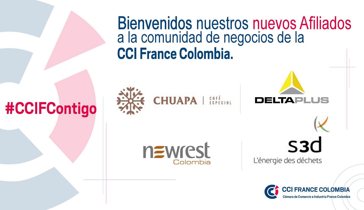Nuevos socios Presentamos a nuestros nuevos Afiliados 27 octubre 2021 Café Chuapa Sector de Actividad: Comercio e industria Delta Plus Sector de Actividad: Infraestructura, Construcción & Ingeniería Newrest Sector de Actividad: Servicios empresariales y Consultoría s3d Ingénierie Sector de Actividad: Medio Ambiente y Energías