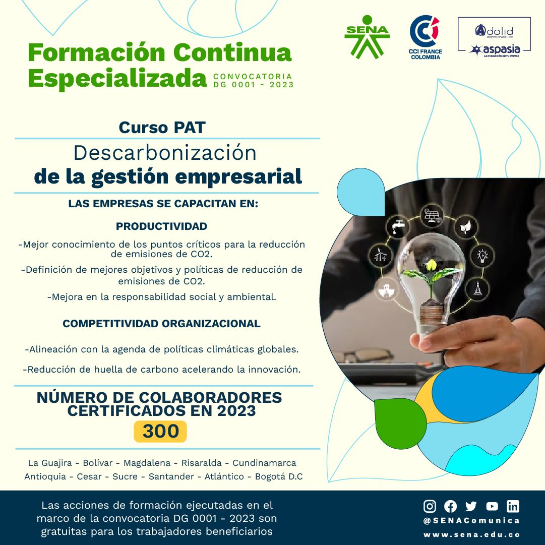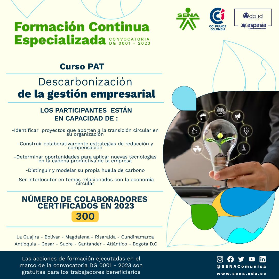 ? Nos llena de orgullo compartir los extraordinarios logros derivados de la reciente formación Descarbonización de la Gestión Empresarial desarrollado en colaboración con el programa de Formación Continua Especializada y la CCI Francia Colombia!, Cada empresa y colaborador participante ha contribuido de manera para un futuro empresarial sostenible.
