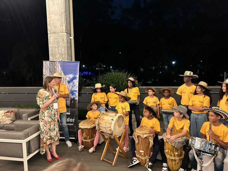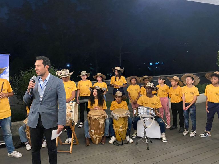 Iniciamos con una muestra cultural a cargo del Grupo de Chirimía infantil de la Fundación ADEL C-8, iniciativa social de nuestro afiliado POMA en Medellín, añadiendo un toque festivo a nuestro encuentro. A las 6:00 P.M., recibimos con honor al señor Embajador de Francia en Colombia, Frédéric Doré, su esposa, y el Servicio Económico de la Embajada, al igual que nuestro cónsul honorario Joseph Delcroix. Agradecemos también, la participación de nuestra junta directiva y su presidente Carlos Molano y la valiosa participación de nuestros empresarios. Fue una velada valiosa para fortalecer nuestras conexiones y explorar nuevas oportunidades en el mundo empresarial.