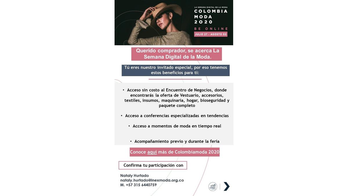 Actualités Se acerca la Semana Digital de la Moda 22 julio 2020 Compradores Colombiamoda 2020 InternacionalLeer más publicaciones en Calaméo