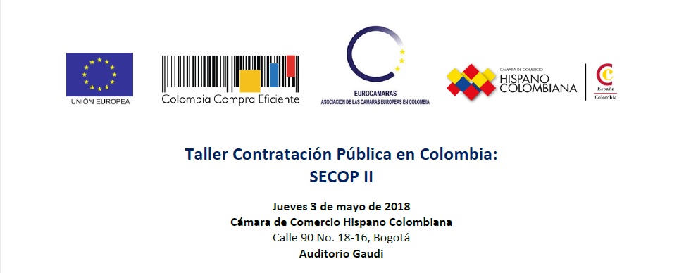Colombia Compra Eficiente, la Cámara de Comercio Hispano Colombiana y la Eurocámaras organizan un taller sobre Compras Públicas en Colombia, dirigido a las empresas de la Unión Europea. Este taller se llevará a cabo el próximo 3 de mayo en la Cámara de Comercio Hispano Colombiana (Auditorio Gaudi - Calle 90 No. 18-16, Bogotá). La asistencia al evento debe ser confirmada antes del 30 de abril al correo delegation-colombia-events@eeas.europa.eu