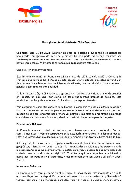 ¡Un hito notable! Nuestro afiliado TotalEnergies está celebrando 100 años de éxito en el mercado mundial