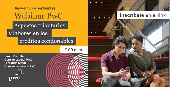 Actualités • Webinar Webinaire PwC, Aspectos tributarios y laborales en los créditos condonables 15 septiembre 2020 REGISTRARSE