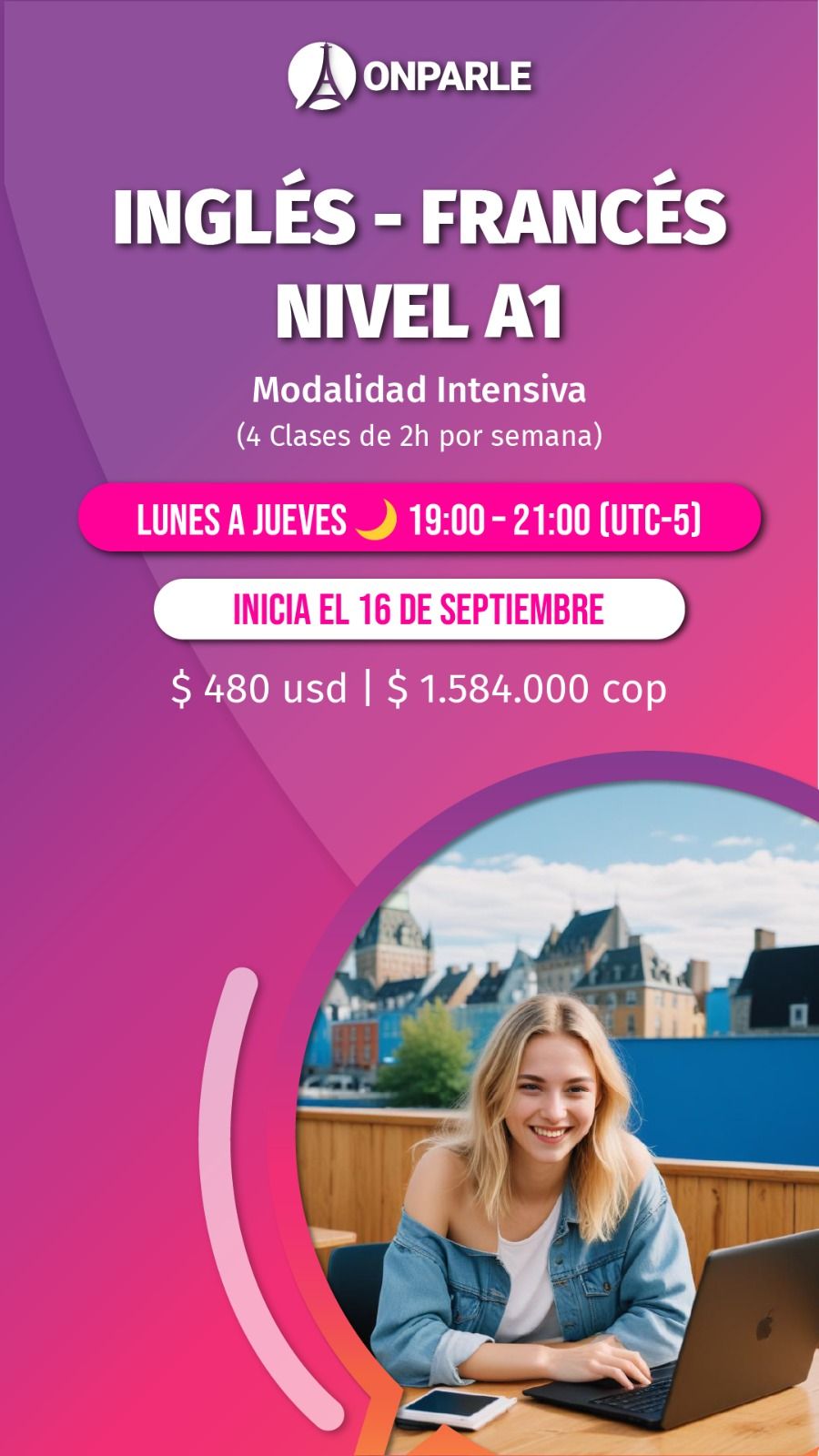 Noticias de empresas Ya están aquí los cursos de OnParle 22 agosto 2024 ¡Se acabaron las excusas! Onparle te presenta sus cursos de francés y inglés a los mejores precios.Cursos de introducción - A1Aproveche los descuentos como miembro de la CCI France Colombia. inSCRIPCIÓN