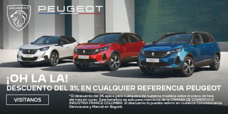 Aprovecha el 3% de descuento que Peugeot te ofrece en la compra de tu vehículo, como miembro de la CCI France Colombia.