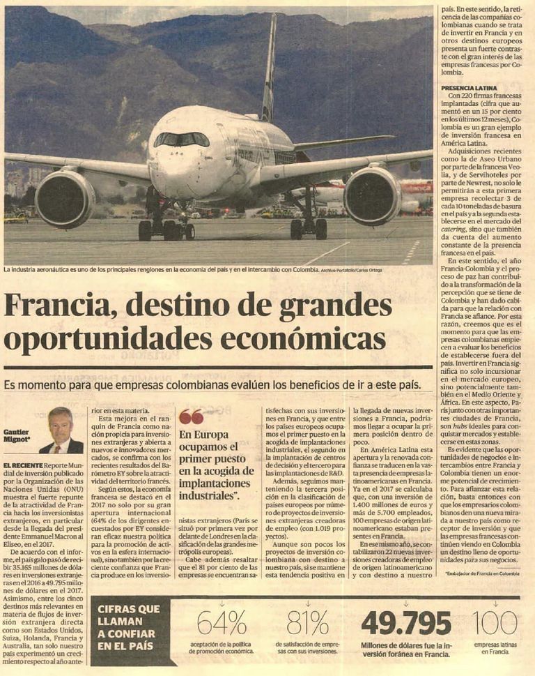 Tribune signée Gautier MIGNOT dans le journal économique Portafolio sur l’attractivité de l’économie de la France et le dynamisme des relations…