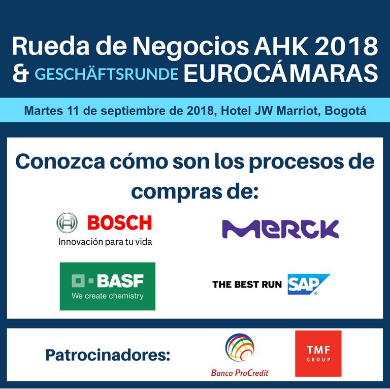 La Rueda de Negocios AHK 2018 – Geschäftsrunde & EUROCÁMARAS, se llevará a cabo el 11 septiembre de 2018 en Bogotá en el Hotel JW MARRIOT. La Rueda…