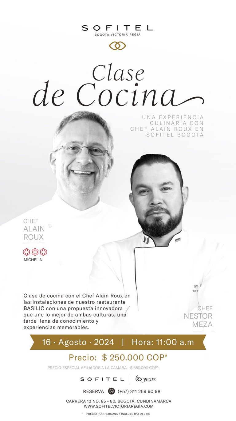 No pierda esta oportunidad única de cocinar junto al Chef de talla mundial Alain Roux