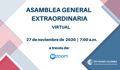 El Presidente de la Cámara de Comercio e Industria France Colombia (en adelante la “CCI France Colombia”), en ejercicio de sus atribuciones legales y estatutarias se permite convocarlos a la reunión extraordinaria de la Asamblea General de la CCI France Colombia, la cual se celebrará por videoconferencia el próximo veintisiete (27) de noviembre del año dos mil veinte (2020), a las siete de la mañana (7:00 a.m.), en los términos del artículo 19 de la Ley 222 de 1995, modificado por el artículo 148 del Decreto Ley 019 de 2012 y los artículos 1° del Decreto 398 de 2020; y la Circular Externa 013 del 17 de marzo de 2020 expedida por la Secretaría Jurídica Distrital de Bogotá, teniendo en cuenta el estado de emergencia sanitaria por ocasión del COVID-19, decretada por el Ministerio de Salud y Protección Social mediante la resolución 385 de 2020.