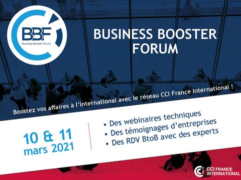 Nous avons le plaisir de vous inviter à participer à la seconde édition du Business Booster Forum, un événement 100% virtuel organisé par CCI France International, qui se déroulera les 10 et 11 mars prochains.