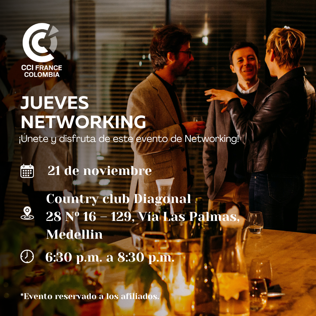 La CCI France Colombia a le plaisir de vous inviter à son événement de Networking qui se tiendra le 21 novembre prochain à partir de 18H30.