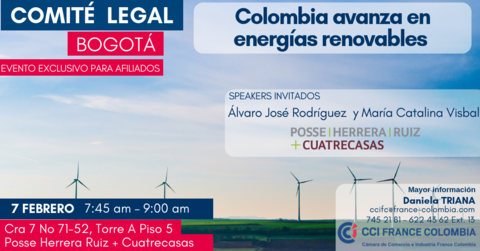 COMITÉ LEGAL: "La Colombie progresse dans les énergies renouvelables" avec POSSE HERERA RUIZ + CUATRECASAS le 7 février 2019 à Bogota