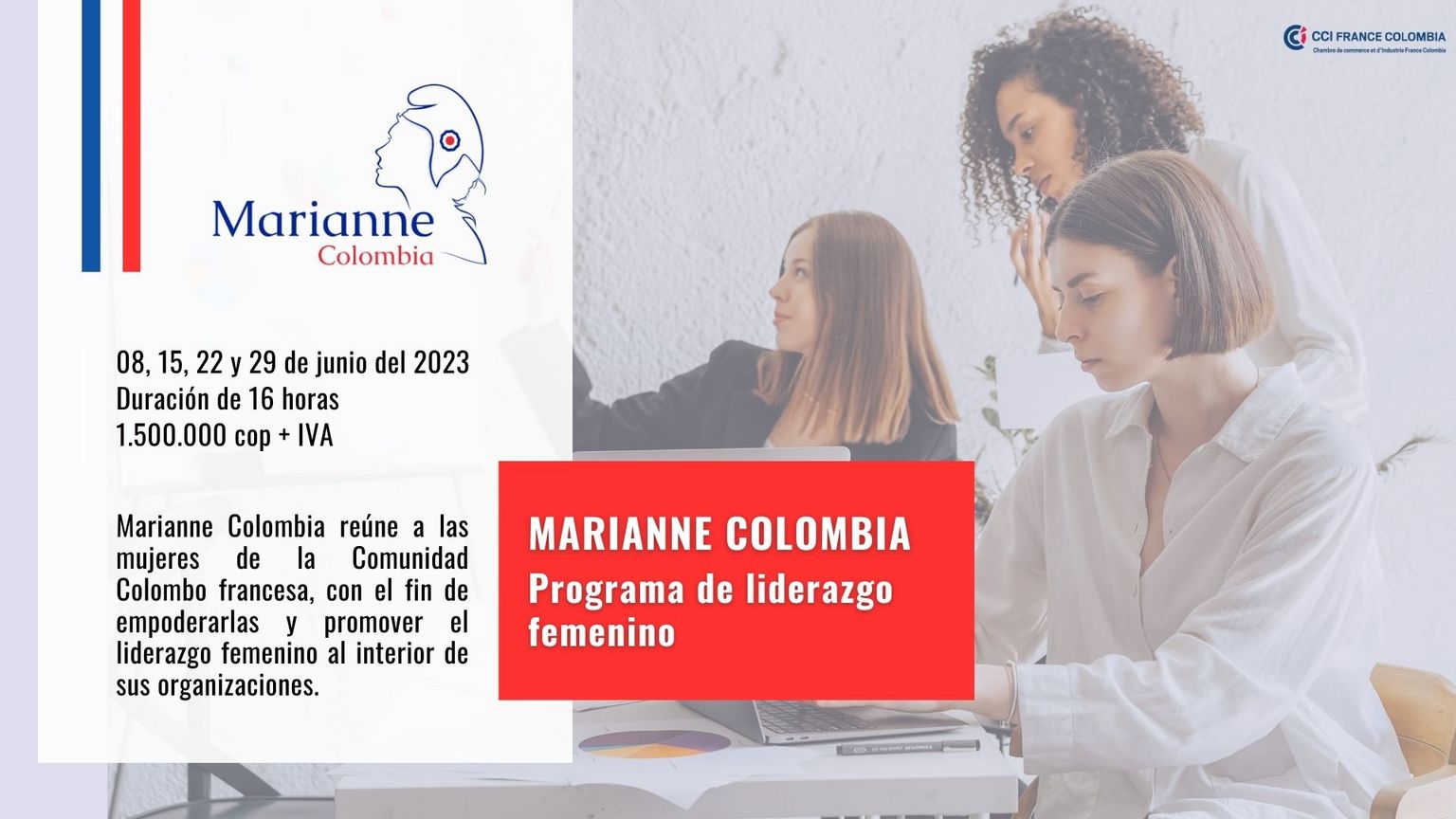 Les 8, 15, 22 et 29 juin, aura lieu le programme Marianne Colombia : Women's Leadership organisé par la CCI France Colombia (16 heures au total).