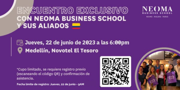 Nous avons le plaisir de vous inviter à notre "événement exclusif avec NEOMA Business School et ses alliés" à Medellín.