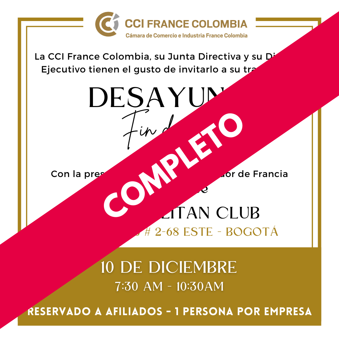 Le Conseil d’Administration, le Directeur Exécutif et l’Équipe de la CCI France Colombie ont le plaisir d’inviter leurs Affiliés à leur traditionnel Petit-déjeuner de Fin d’Année, une occasion idéale pour clôturer l’année dans un environnement de networking.