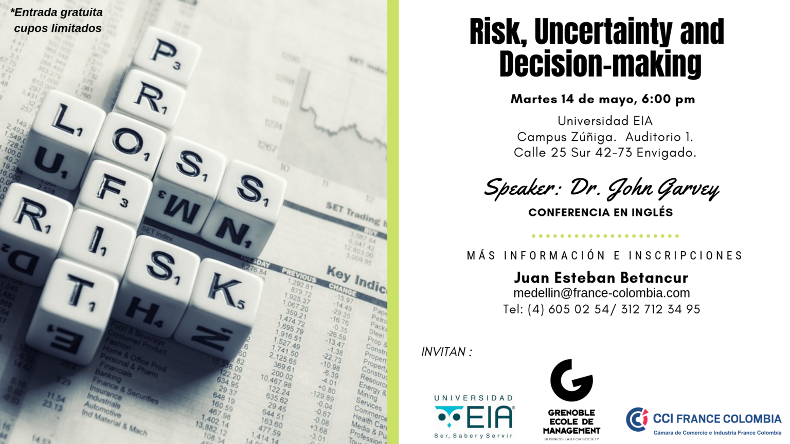 “The concept of Risk is a modern invention – the idea that hazard can actually be anticipated and its consequences mitigated -  and Risk Management is a relatively recent discipline. However the news remind us every day the importance for organizations to anticipate risks in order to maintain operations or simply avoid major financial hits. Through concrete examples of major crisis, Dr. John Garvey will illustrate how risk management can help companies decide on the best options to reduce their exposure to risks.”