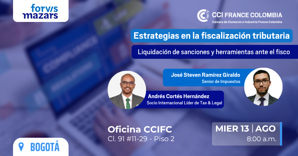 José Steven Ramírez Giraldo – Senior en fiscalité chez Forvis Mazars. Avocat spécialisé en droit public et fiscal, avec une expérience dans le secteur privé et au sein du pouvoir judiciaire. Il est spécialisé en conseil juridique, gestion de contentieux et processus de contrôle fiscal.